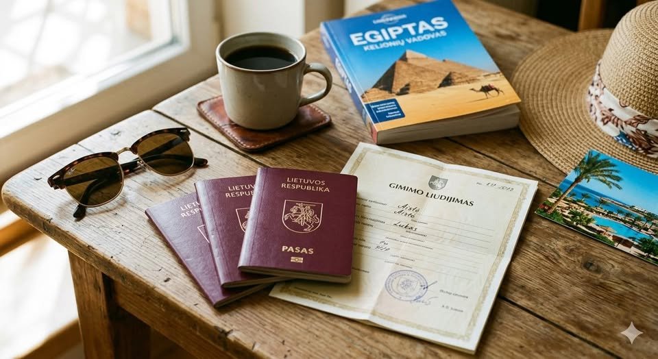 • Vaiko pasas: Būtinas (asmens tapatybės kortelė Egipte negalioja). Pasas turi galioti bent 6 mėnesius po sugrįžimo.
